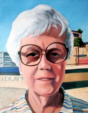 I recently started working on more straightforward portrait paintings. One of the first was the portrait of Mae Fogg. I took a Polaroid snapshot of her one morning on a Florida beach in the morning sun. The canvas is 16”x 20” and is painted in a kind of loose brush stroke fashion. I simplified the background quite a bit so the emphasis is on the face, not on the various element specifics that are in the actual photograph.