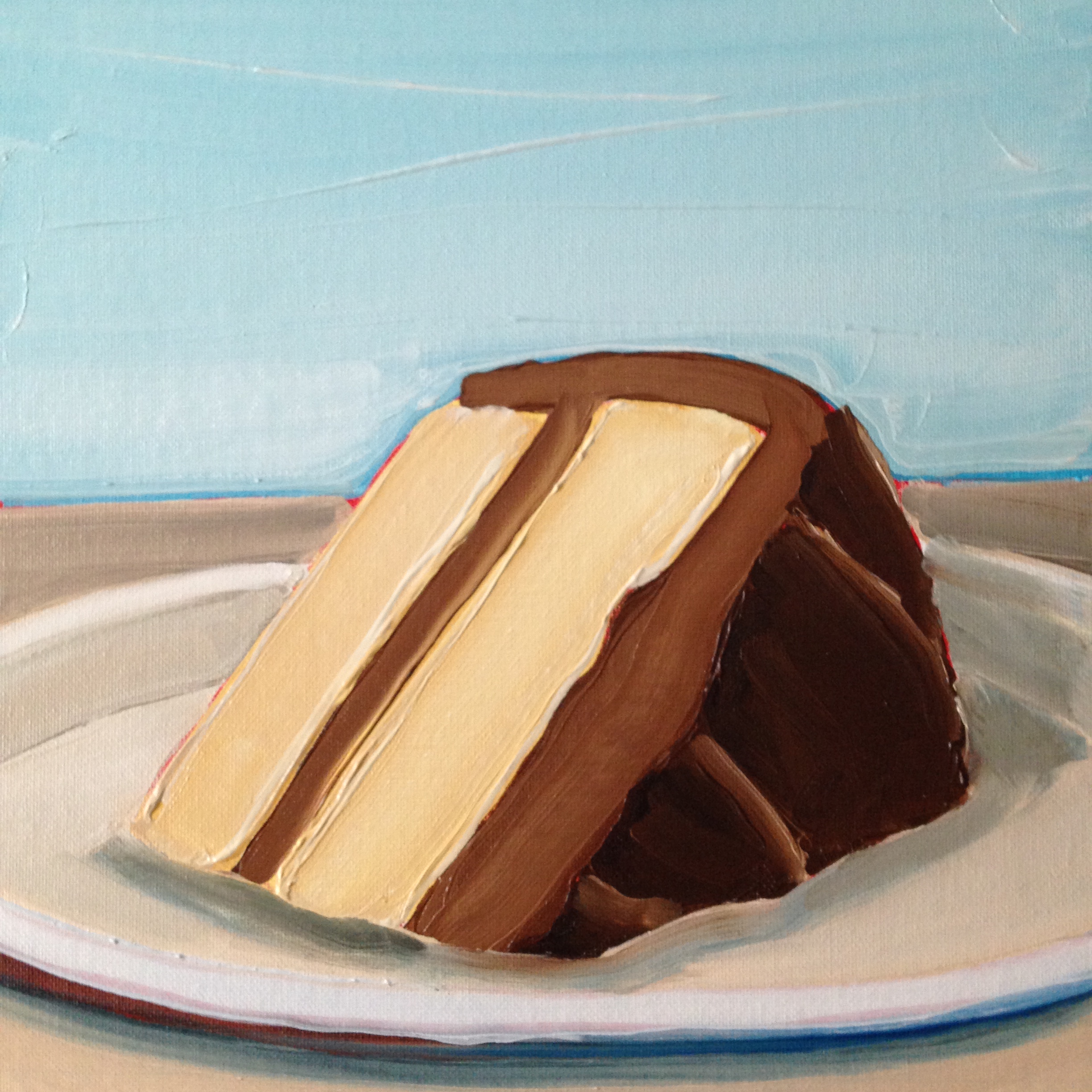 Thank you for the compliment, I very much like several of your poems. When it came to me painting this “miracle” theme trio, I specifically drew inspiration from Mr. Thiebaud when doing the cake slices. I don’t know of an artist who paints cake and pies better then him. So if you’re going to appropriate a style from someone, get it from the best.