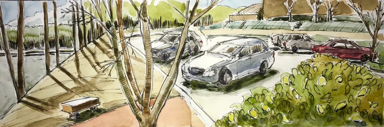 6″ x 14″ ink and watercolor in sketchbook