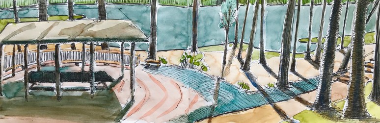6″ x 14″ ink and watercolor in sketchbook
