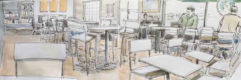 6″ x 16″ ink and watercolor in sketchbook
