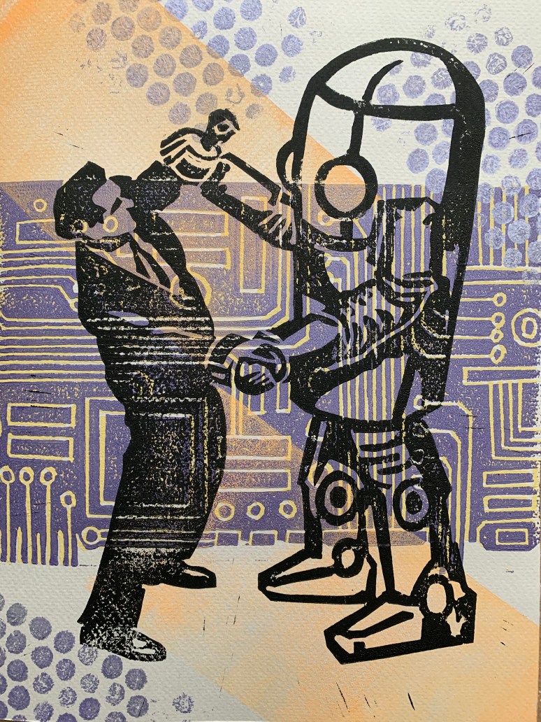 12″ x 9″ multicolored block print