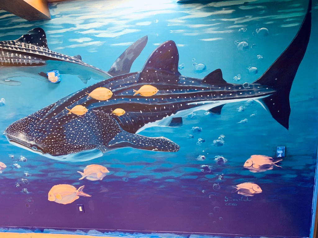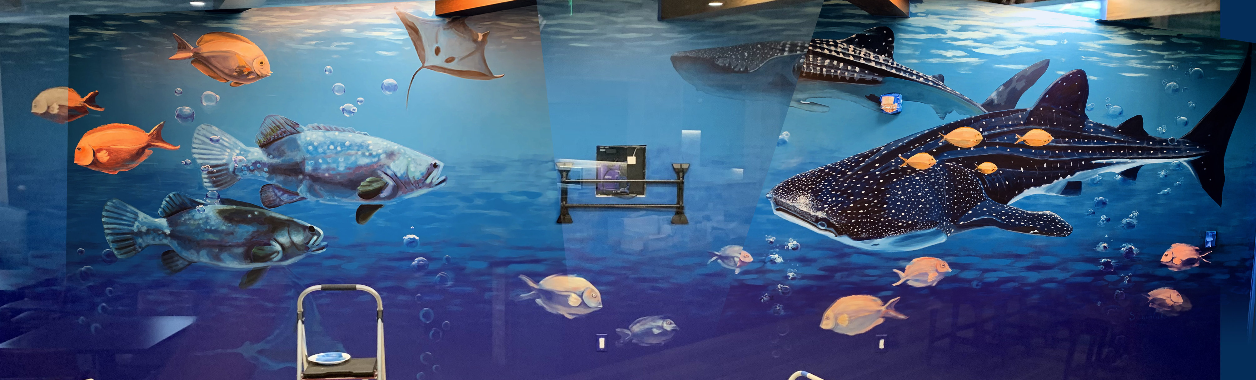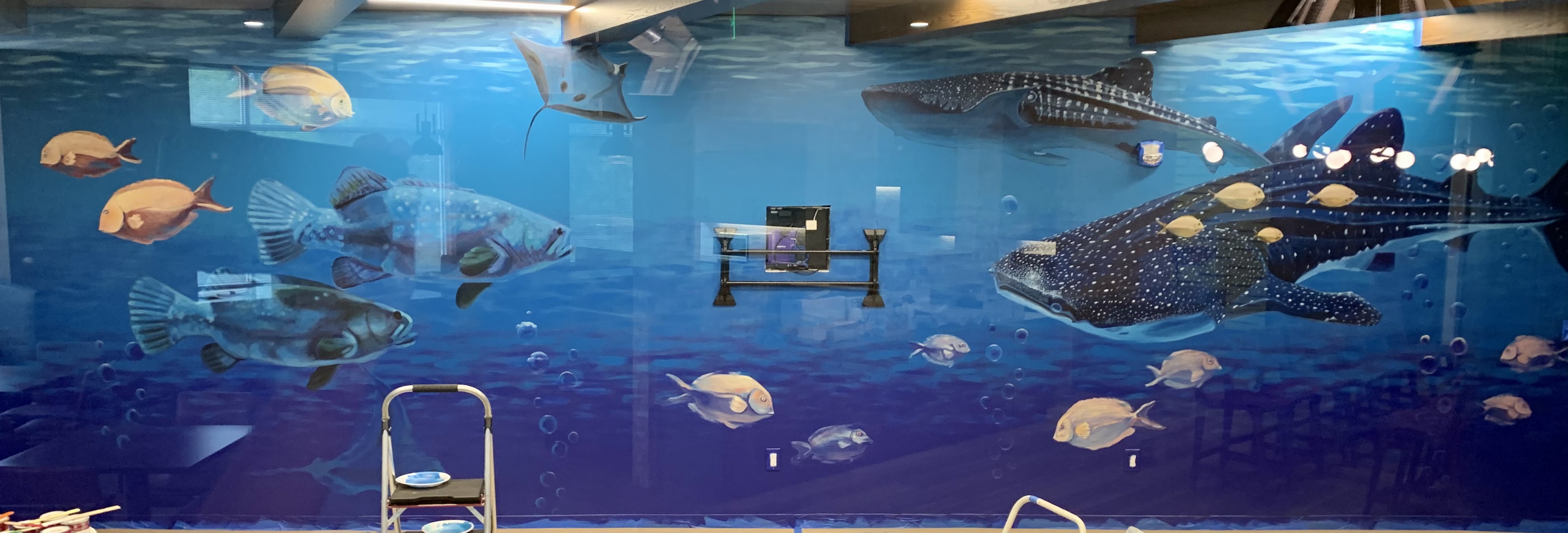 homage to the Atlanta Aquarium, art direction by Art McNaughton; mural art by Armando Chacon, Craig Ford and Elizabeth Samoluk