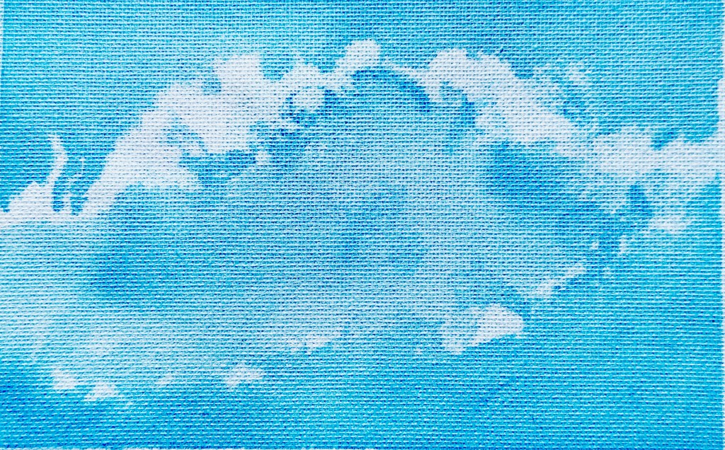 3.75″x 6″ cerulean blue watercolor on raw canvas sketch