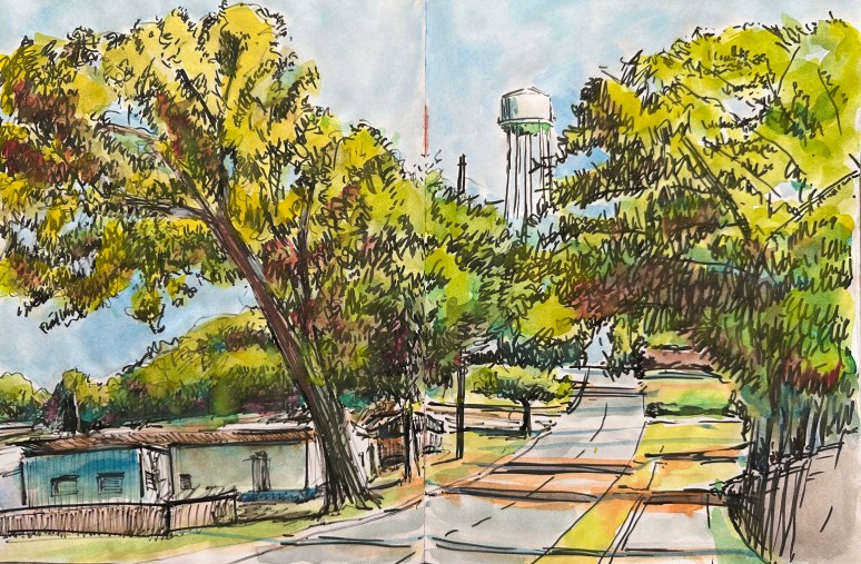 11″ x 17″ sketchbook, pen & ink and watercolor
