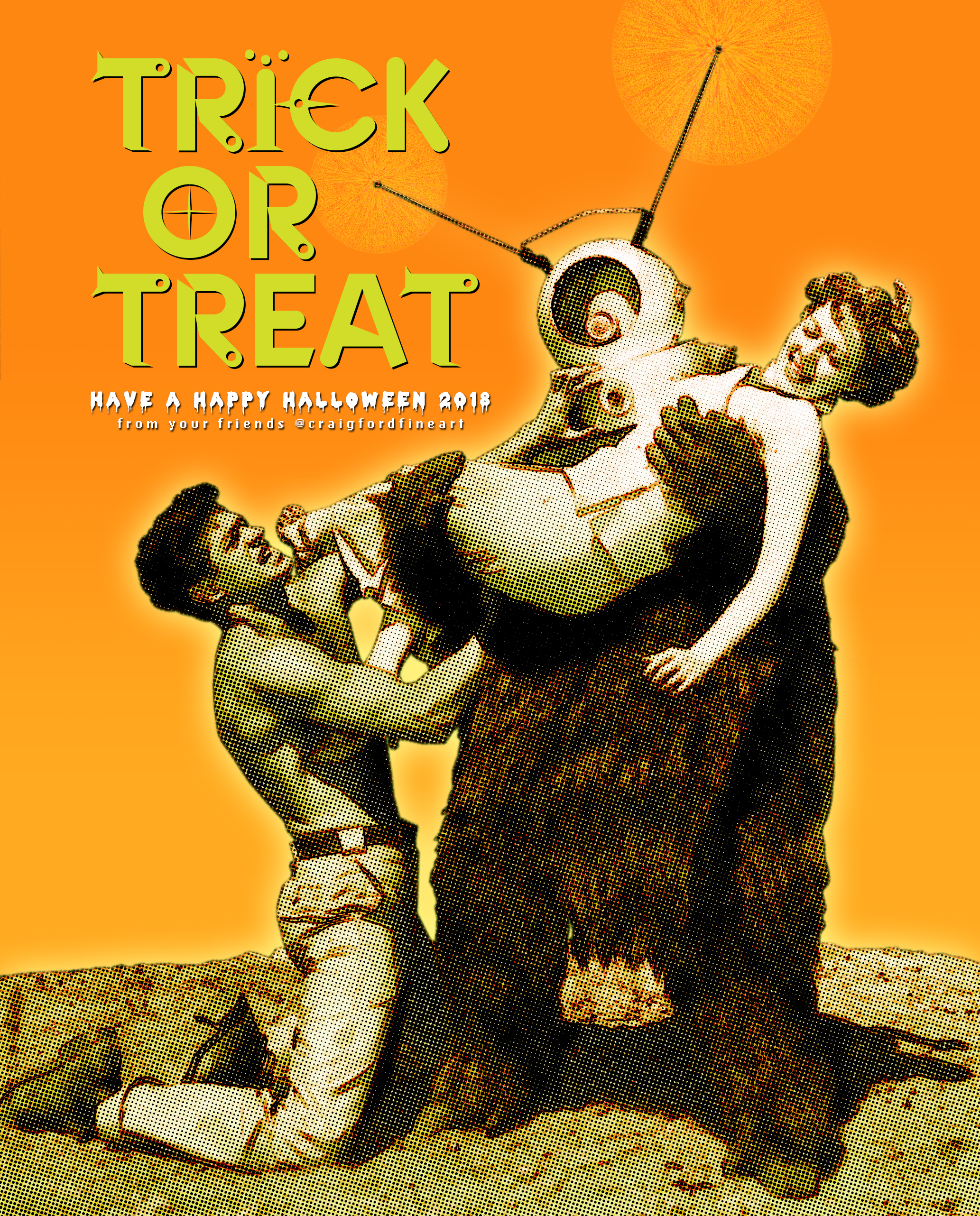 Trick or Treat! A Halloween poster I put together to show how to use Photoshop back when I was teaching a graphic design class at a local college pre-pandemic.