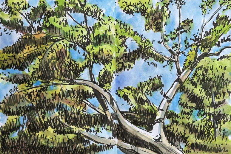 11″x 17″ sketchbook spread in ink and watercolor