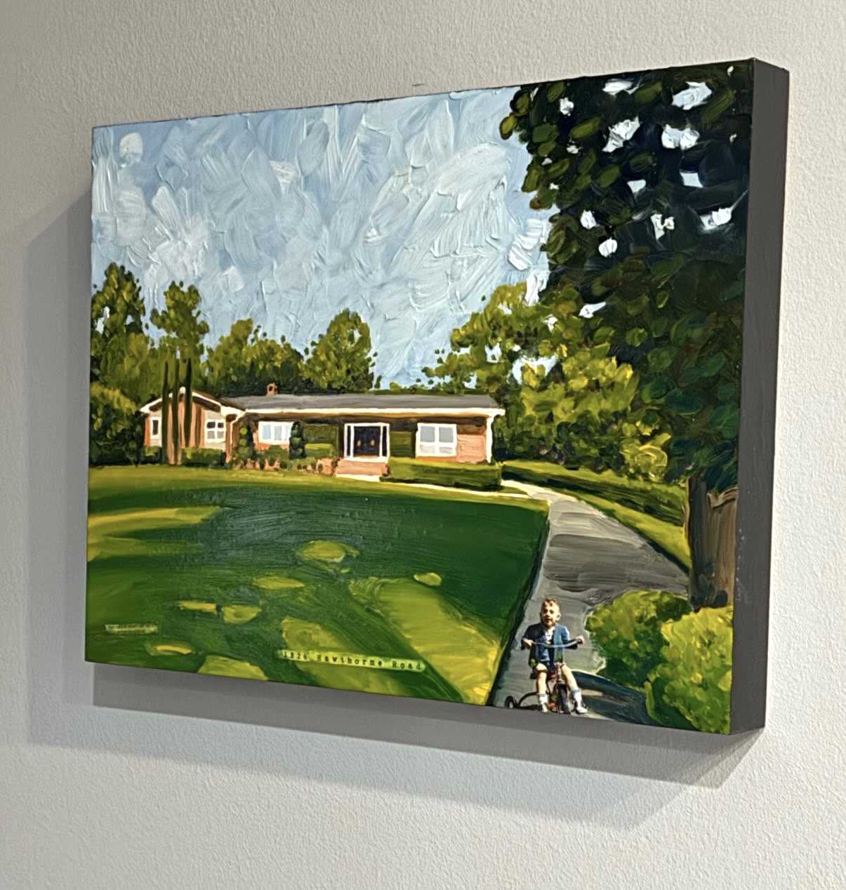 Commissioned art in the patron’s home. 12″ x 16″ x 1.5″ mixed media (oil, printer ink, paper, acrylic varnish) on cradled wood panel.