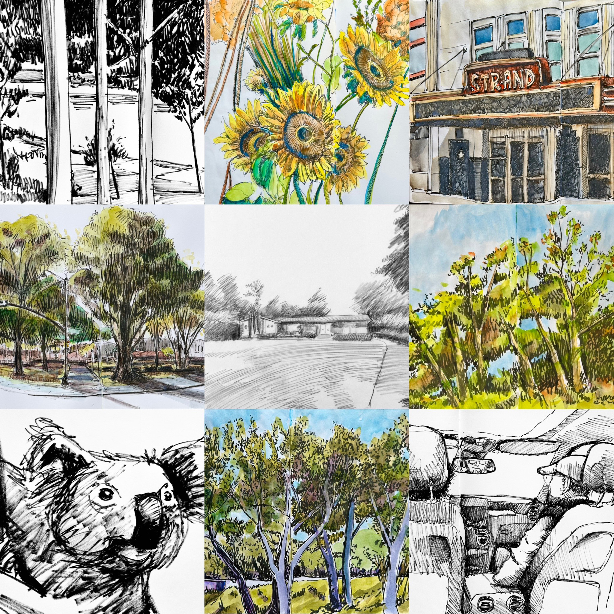This second image is made up of drawings/renderings found in my sketchbook. I mostly use pen and ink with watercolor washes for embellishment, occasionally using just pencil.