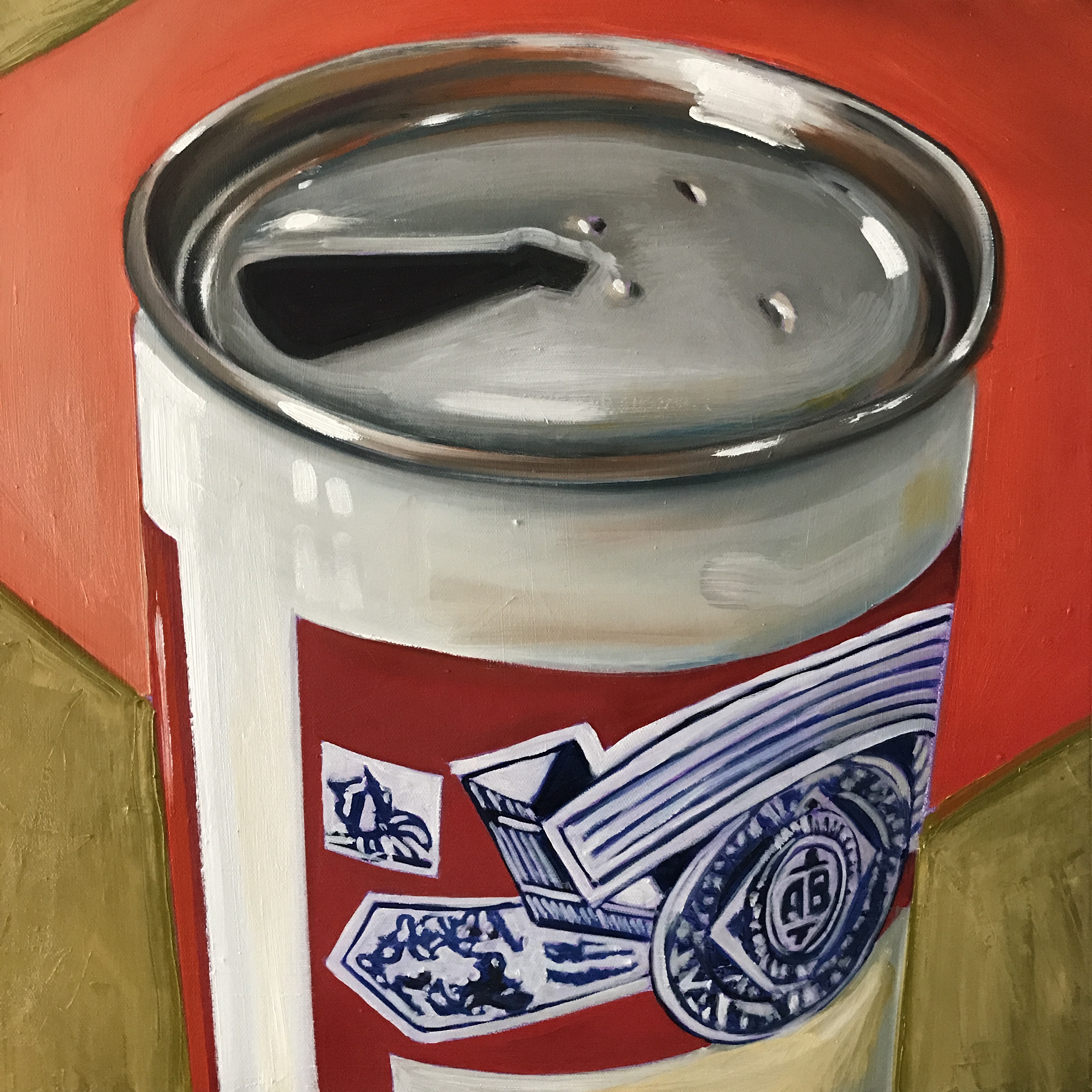 So funny little story, maybe. So one day a friend of mine who had a combo office space and impromptu art gallery, asked if I could paint anything. I said sure, obviously, some things I might paint better than others, but I felt pretty confident in my abilities. So he reached into his waste basket and pulled out an empty beer can from the previous evening. “Ok, then paint this.” I returned to my studio and painted this still life. The indentations on the top of the beer can resembled eyes and nostrils, to me, while the opening kind of looked like a mouth. My ode to the king of beers, meh.