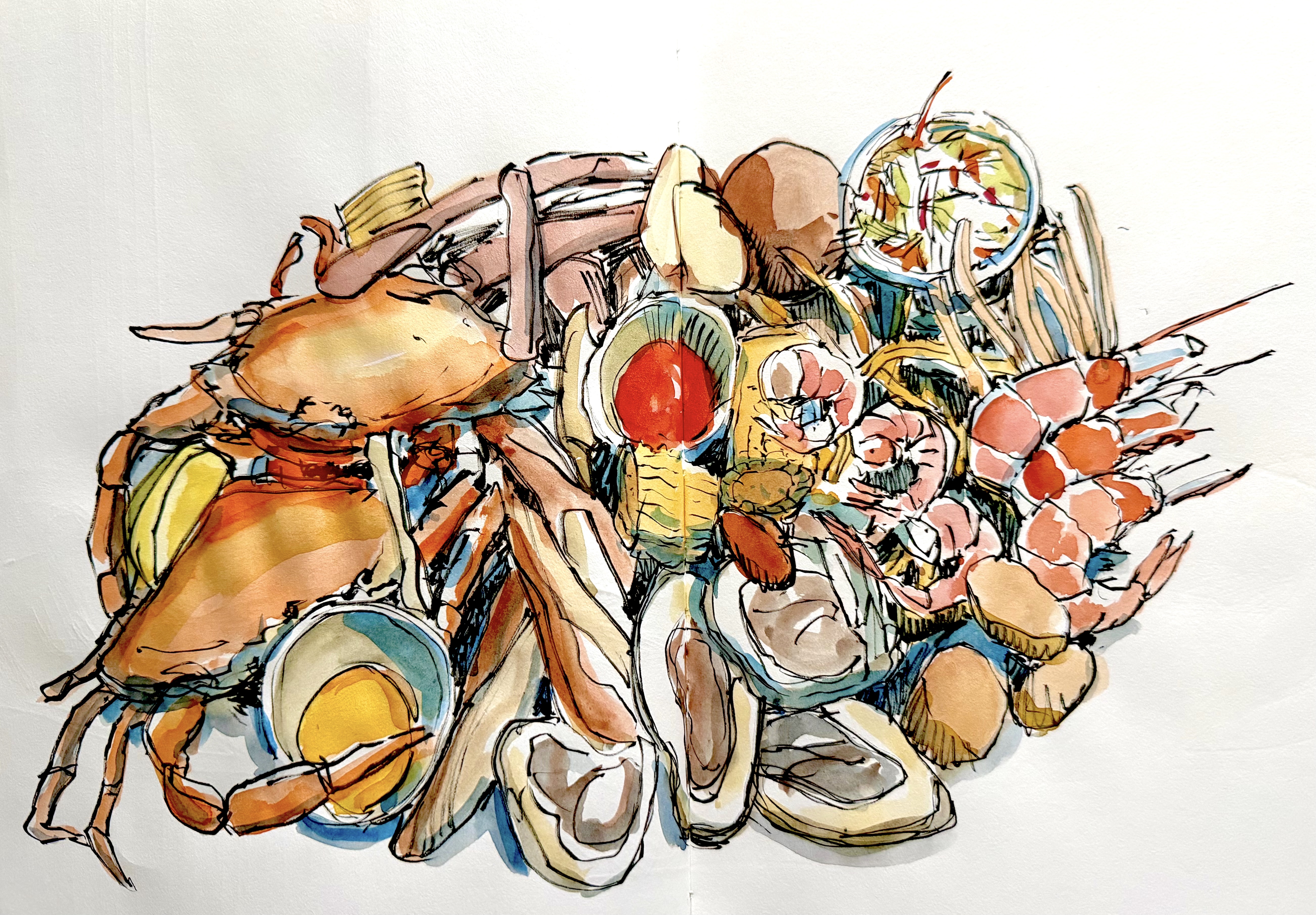 11″ x 17″ sketchbook spread in ink and watercolor