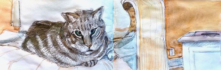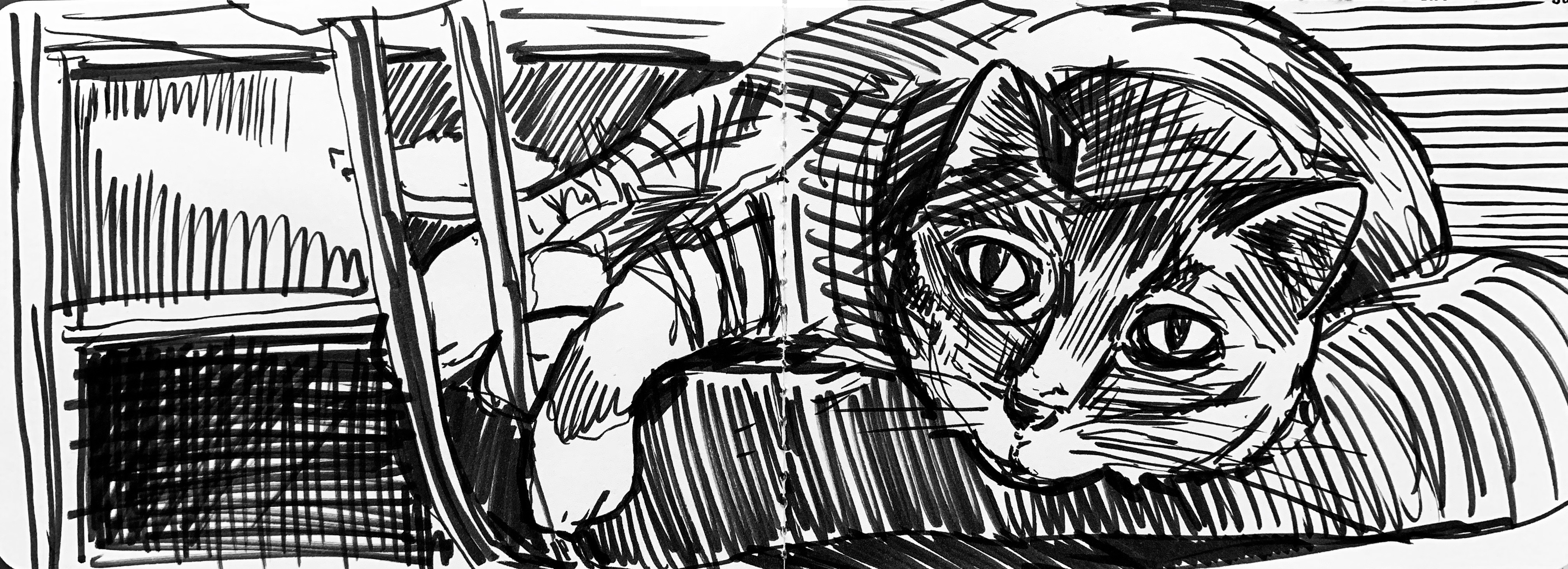 4″ x 11″ brush pen on paper6″ x 16″ ink and watercolor in sketchbook4″ x 11″ brush pen on paper6” x 18” pen and ink sketchbook11″ x 17″ sketchbook, pen and ink, watercolor