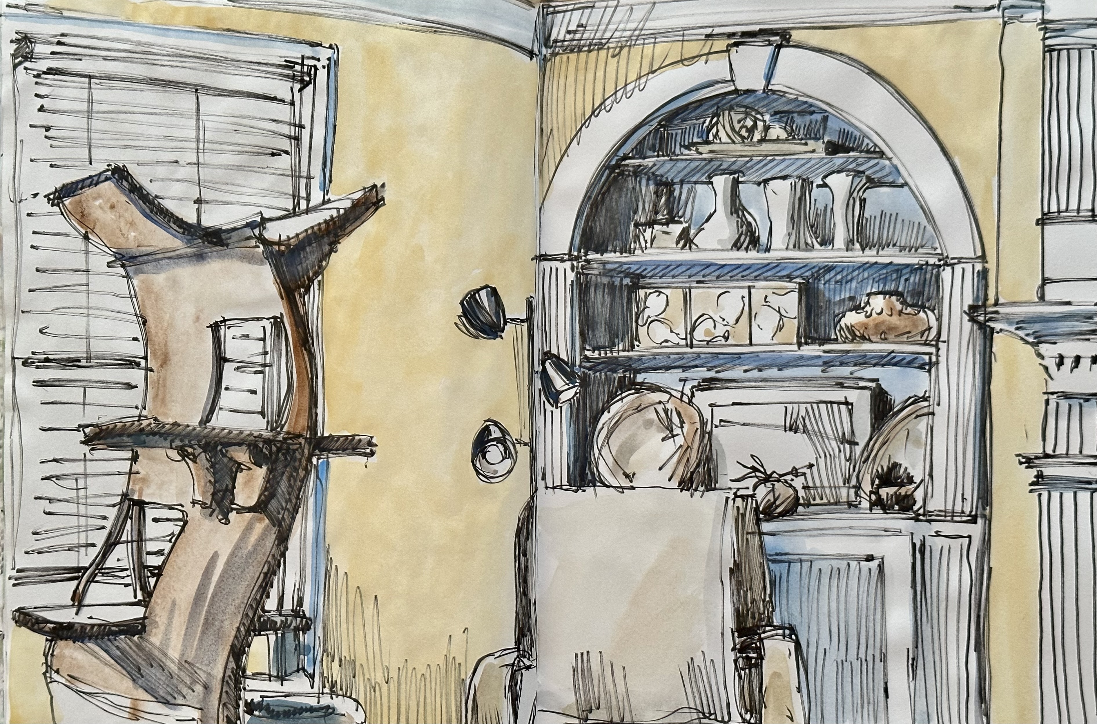 11″ x 16″ ink and watercolor in sketchbook