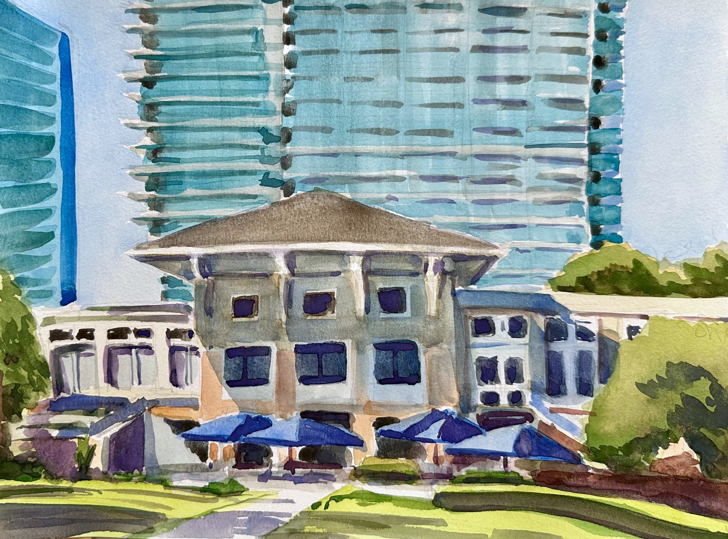 For better or worse, here’s the 18″x 24″ finished watercolor. Fortunately, it was raffled off to raise money for Children’s Healthcare of Atlanta and the folks who bought it seemed pleased with the results.